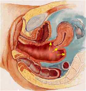 by a large penis (length 9+ inch) in an upwards angle, making the uterus tilt